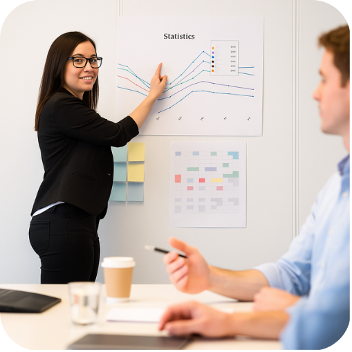 Evaluamos de forma integral la empresa: revisamos tu estructura organizacional, flujos de trabajo y métricas clave, mapeamos cada proceso para detectar cuellos de botella y áreas de desperdicio (tiempo, recursos y costos), analizamos la cultura y el clima laboral y revisamos indicadores de sostenibilidad (consumo de energía, materiales y huella ambiental). Con los hallazgos, generamos un informe que prioriza oportunidades de mejora, estima el ahorro potencial y traza la hoja de ruta para la siguiente fase del proyecto.